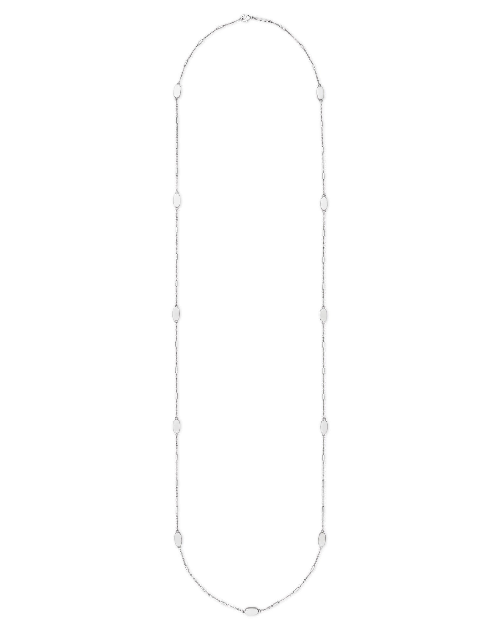 Meet your new everyday layerable: the Franklin Long Necklace in Bright Silver. This long necklace features a thin metallic chain and dainty accents in our signature shape, and effortlessly complements any style. Make accessorizing easy by adding the Franklin Long Necklace to your wardrobe.