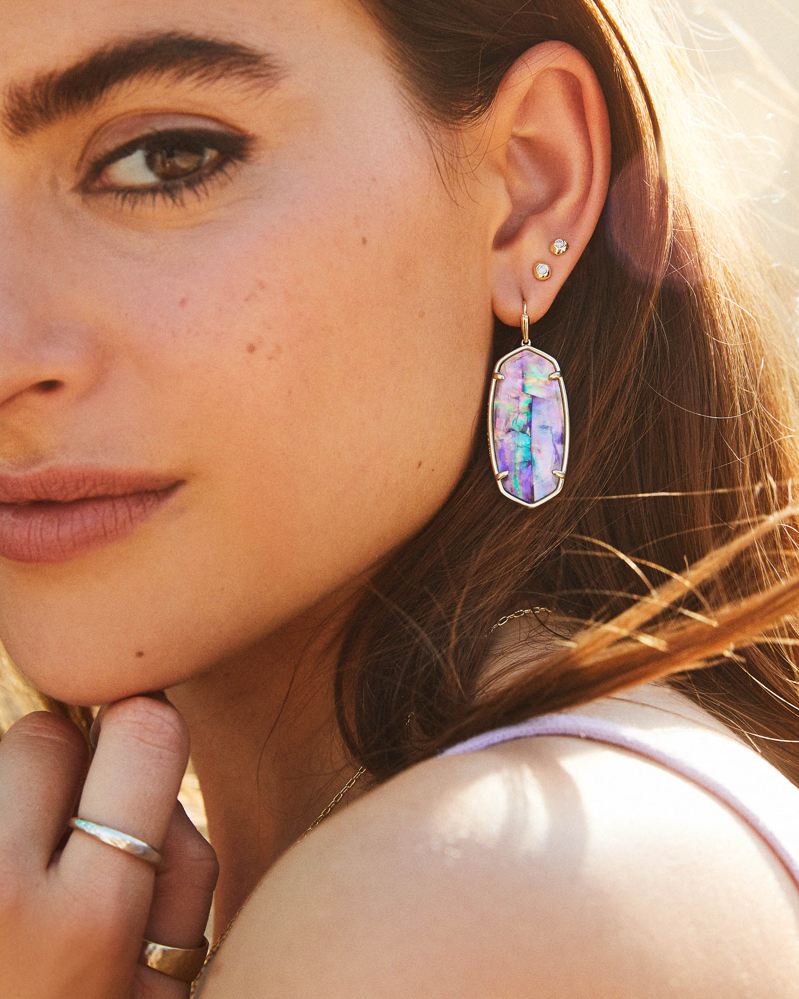 A dazzling version of one of our most classic styles. The Faceted Elle Gold Drop Earrings in Lilac Abalone are perfect for both those who love their recognizable shape and those who are first laying eyes on it. Loved for their versatility, these Gold drop earrings pair perfectly with whatever you wear. The Faceted Elle Gold Drop Earrings are a sparkling new take on an iconic Kendra Scott style we just know you'll love.