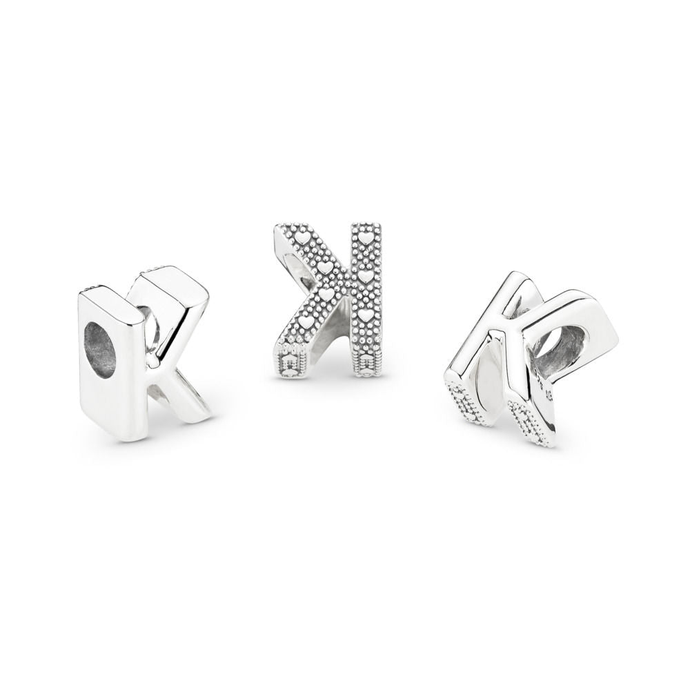 Keep it simple and stylish with this letter 'K' letter charm. PANDORA's glittering alphabet charms in a sterling silver are a great way to spell out your keywords, names or initials.