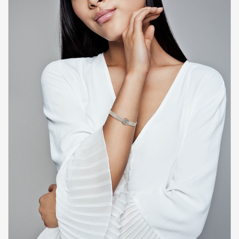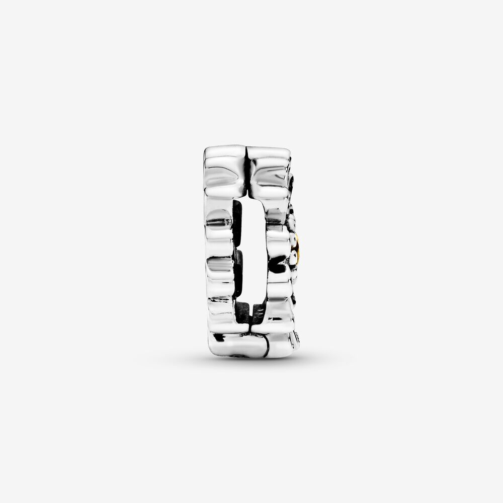 Bring spring into your look with this Sparkling Daisy Flower Clip Charm from the Pandora Reflexions™ collection. Hand-finished in sterling silver, this daisy clip charm features a two-sided design that allows you to switch it up as the mood strikes. On one side, cubic zirconia and a yellow crystal bring out the flower’s delicate shape, while the other side features a polished back. Inspired by the wild and free daisy, the flower clip charm celebrates freedom and openness.