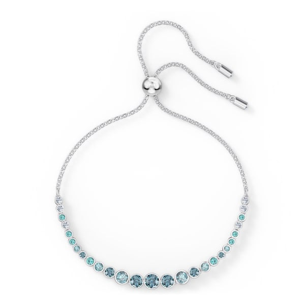 This bracelet by Swarovski creates a modern, attractive look through a beautiful color scheme. Numerous sparkling crystals shimmer in blue and green hues, skillfully complemented by clear crystals. The size of the crystals increases towards the center of the bracelet to great visual effect. A perfect fit for casual everyday outfits, either by itself or combined with additional bracelets for a trendy stacking look.