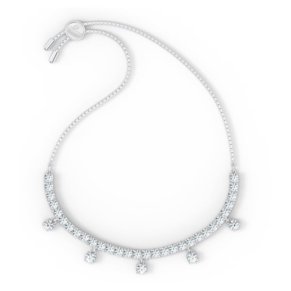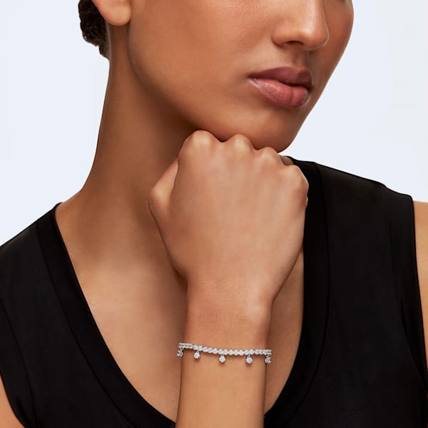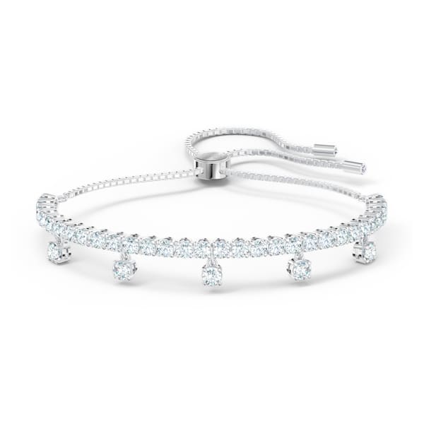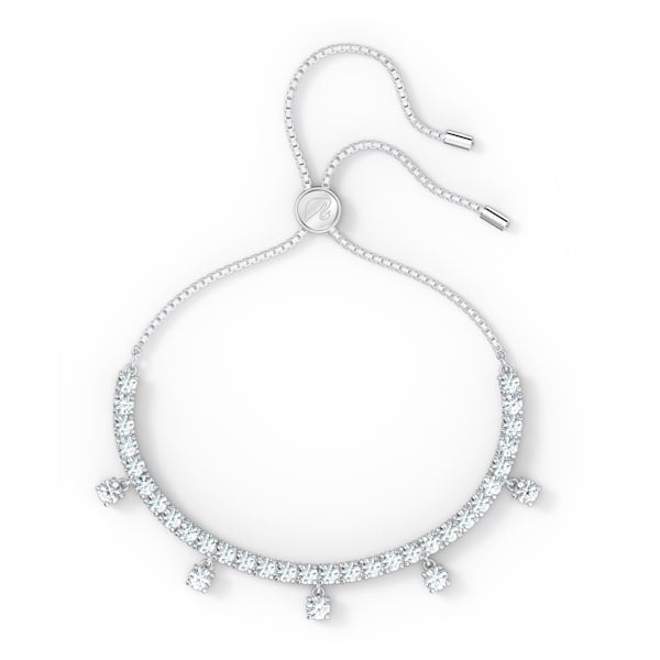 This attractive bracelet by Swarovski radiates stylish coolness. A row of sparkling white stones adorns the bracelet, with several additional stones dangling from it, accentuating the design. The bracelet closes with an adjustable sliding closure and is a great addition to matching bracelets in the trendy stacking style. A brilliant yet casual look, perfect to dress-up everyday outfits.