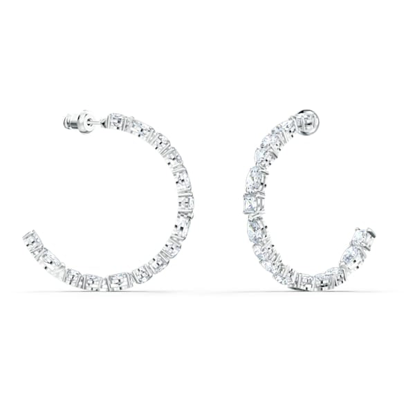 Swarovski Tennis Deluxe Mixed Hoop Pierced Earrings, White, Rhodium plated