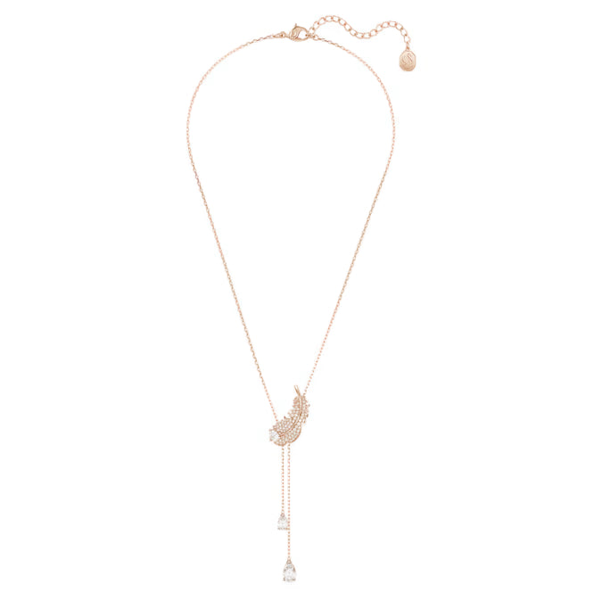 Express yourself in dazzling crystals with this nature-inspired pendant from the Nice family. The rose gold-tone plated piece is worn on a chain with a lobster closure and features a gorgeous feather motif with shimmering pink pavé and Swarovski Zirconia. Two pear-shaped stones hang beneath to add extra light-catching joy to the look. Wear this piece to bring serenity and a dreamy beauty to any style.