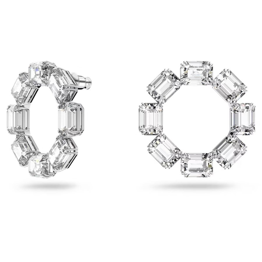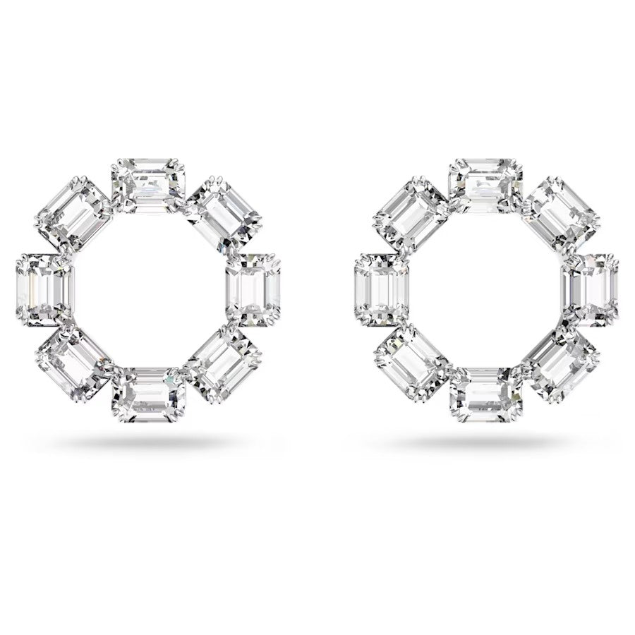 Millenia hoop earrings Circle, Octagon cut, White, Rhodium plated